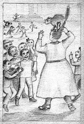 Koulutyöhön kuuluu aina myöskin hauskoja hetkiä. Matilda on säilyttänyt seuraavan piirustuksen, jonka tapahtuma lienee sattunut hänelle välitunnilla: