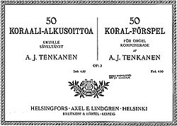 Aaron Tenkasen koraalialkusoittojen kokoelmasta.