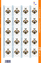 Suvun vaakunalla varustettu 1. lk:n postimerkkiarkki, 20 kpl arkilla, hinta 30 €. |