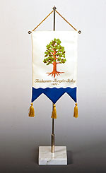 (loppuunmyyty) Yrjö Tenkasen 1970-luvulla suunnittelema viiri, jonka aihe perustuu Sakkolan kirkonmäellä kasvaviin petäjiin, joiden juuret näkyvät hiekassa paljaina, mutta silti elinvoimaisina. Lailla kirkkomäkes petäjäin – Aleksanteri Aava |