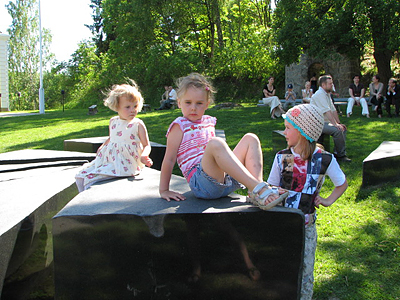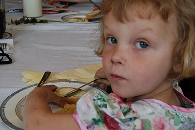 Jälkiruokakin maistui helteisenä päivänä. Aarno ja lapsenlapset